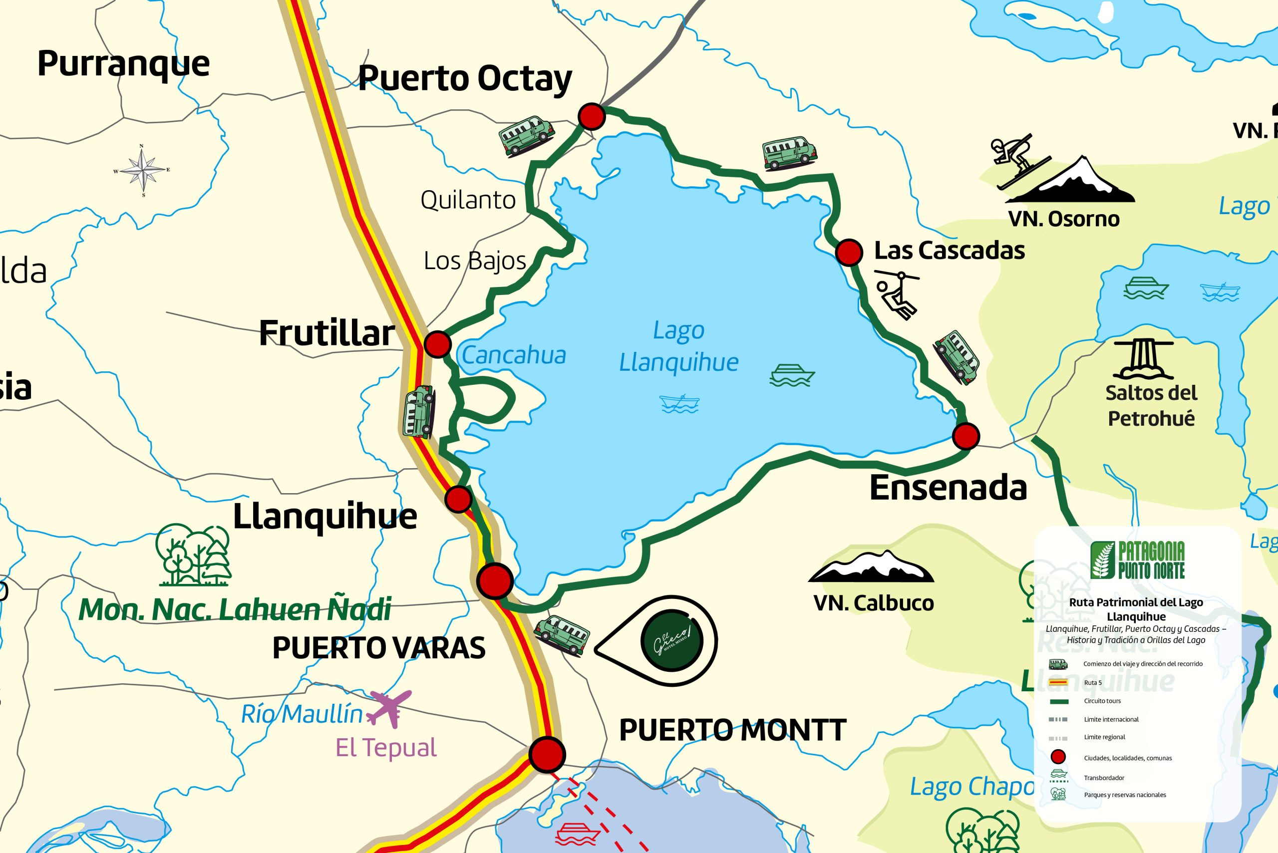 Nuestra primera parada será en Llanquihue, ciudad conocida por su tradición en cecinas y por ser el punto donde nace el río Maullín. Desde aquí bordearemos el lago por el pintoresco Camino del Lago, disfrutando de vistas únicas al Volcán Osorno y a los campos del sur de Chile.